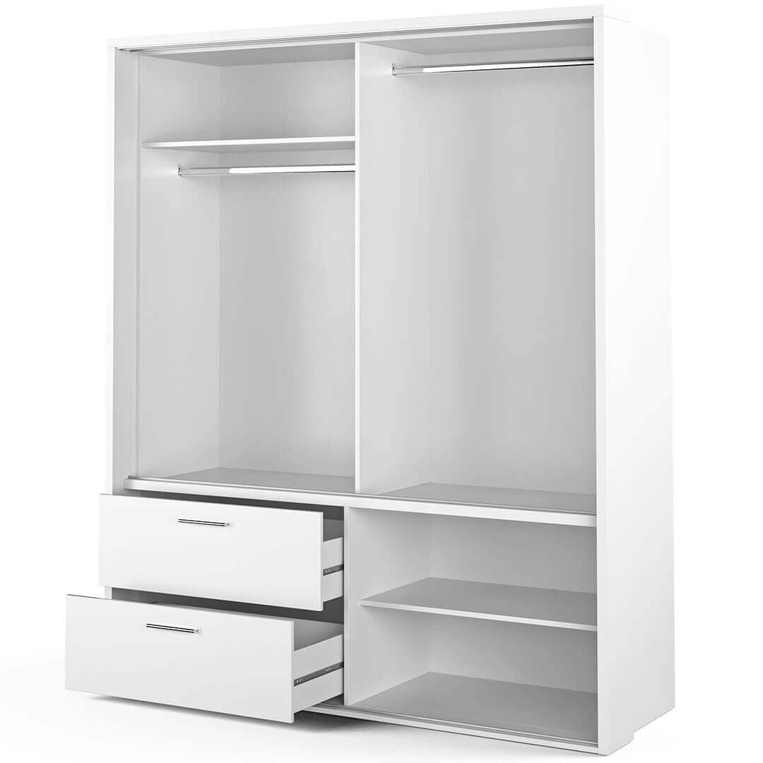 Armoire en bois clair, avec 2 portes coulissantes, 2 tiroirs et miroir Arti 22, Blanc Mat, L180xW63xH215 cm