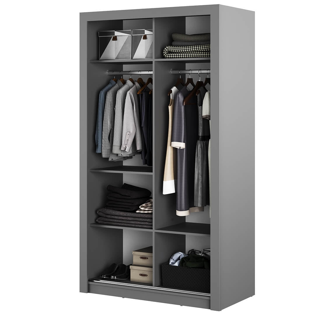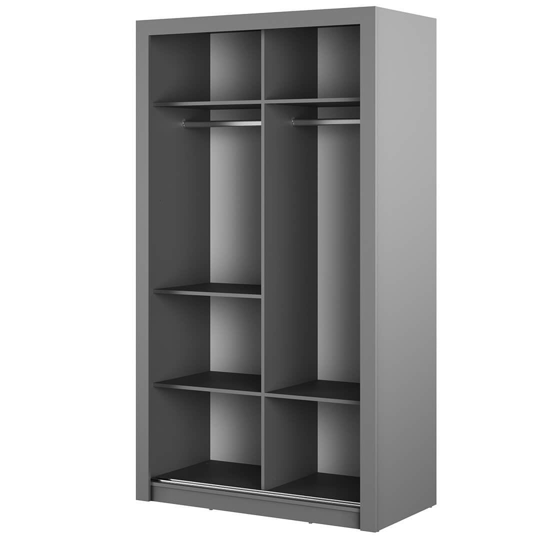 Armoire en bois clair, avec 2 portes coulissantes et miroir Arti 19 Double, Gris Mat, L120xP60xH215 cm