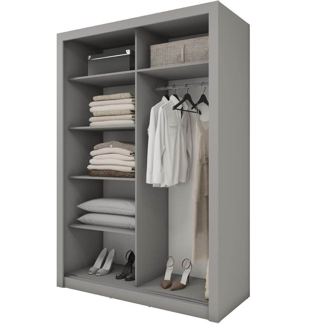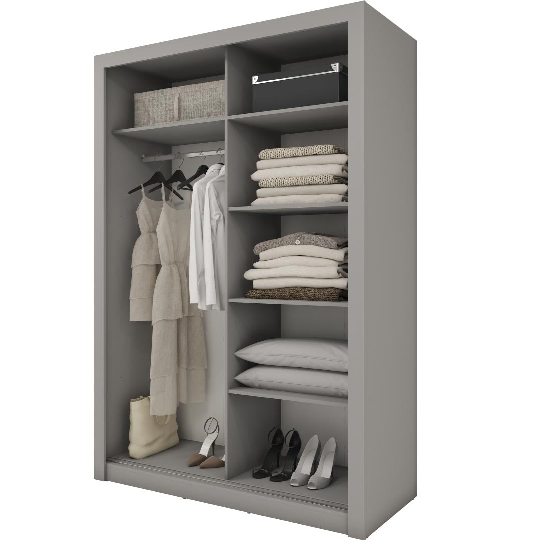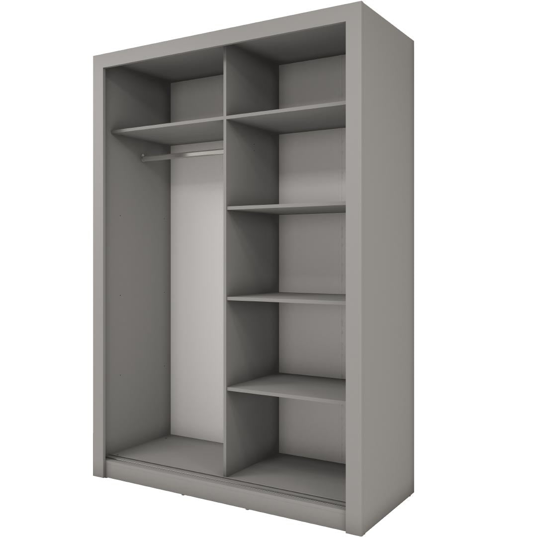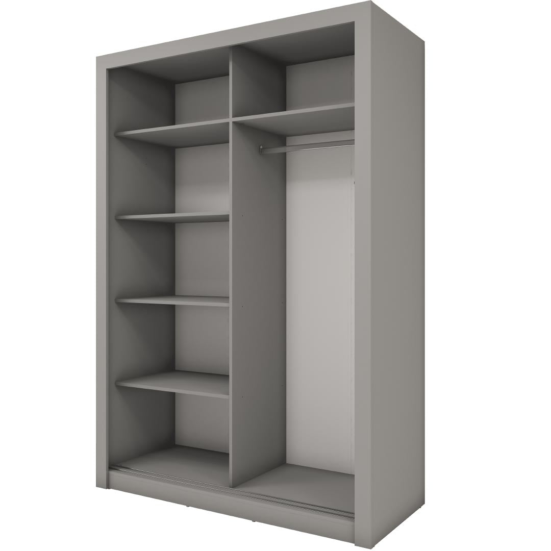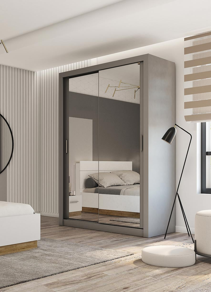 Armoire en bois clair avec 2 portes coulissantes et miroir Idea 17, Gris mat, L150xP60xH215 cm