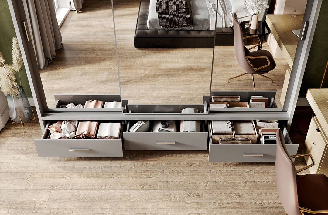 Le design moderne et les détails uniques soulignent le caractère distinctif de chaque meuble. L'armoire à portes coulissantes Arti 01 Triple se distingue par son aspect esthétique et attrayant, qui s'intègre parfaitement dans n'importe quelle chambre.