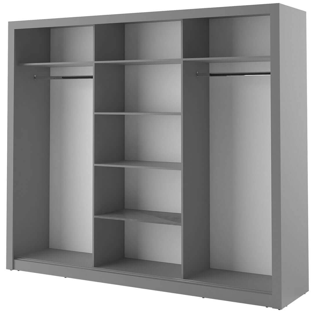 Armoire en bois clair avec 3 portes coulissantes et miroir Arti 02 Triple, Gris, L250xP60xH215 cm