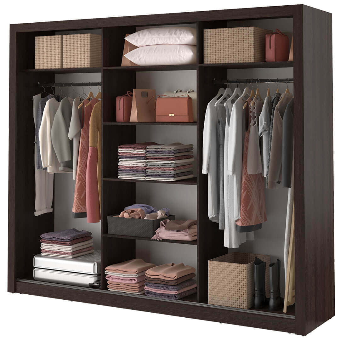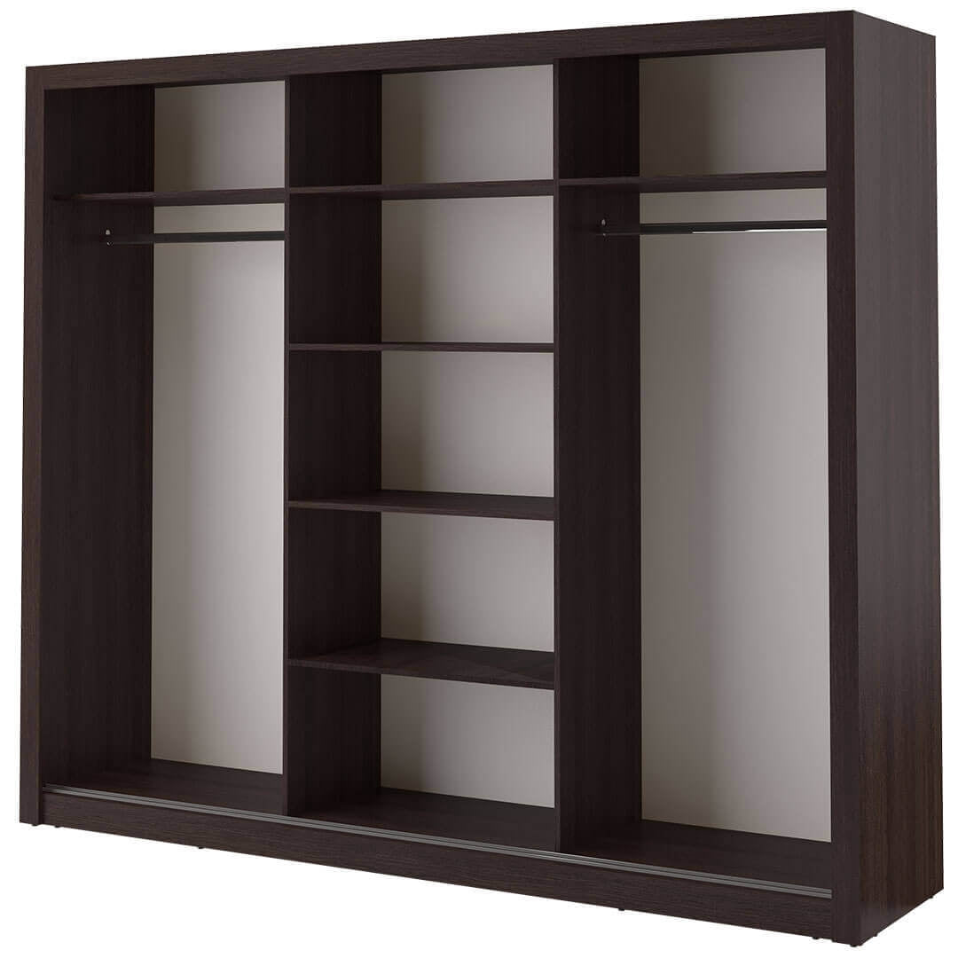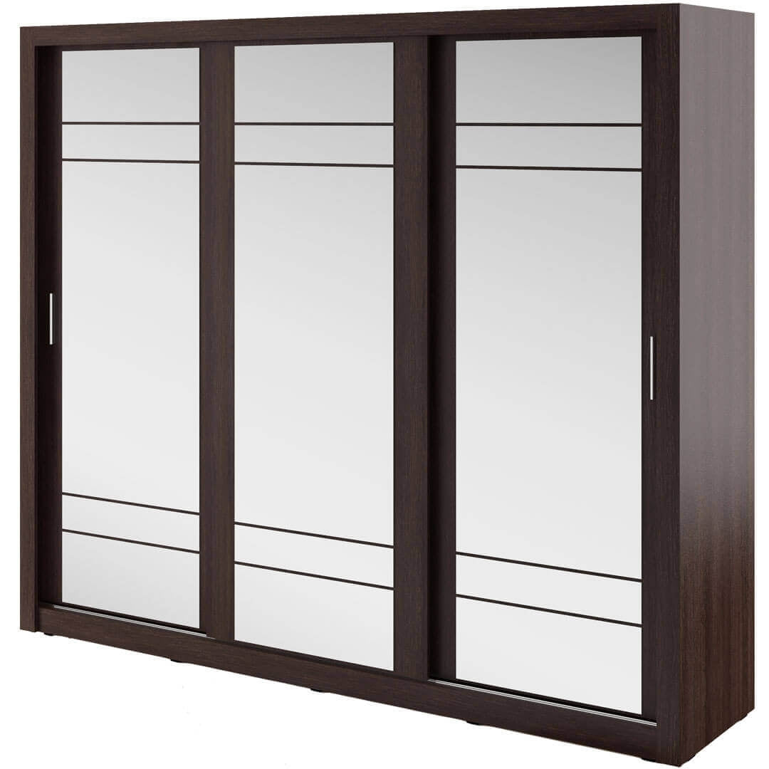 Armoire en bois clair avec 3 portes coulissantes et miroir Arti 02 Triple, Wengé Mat, L250xP60xH215 cm
