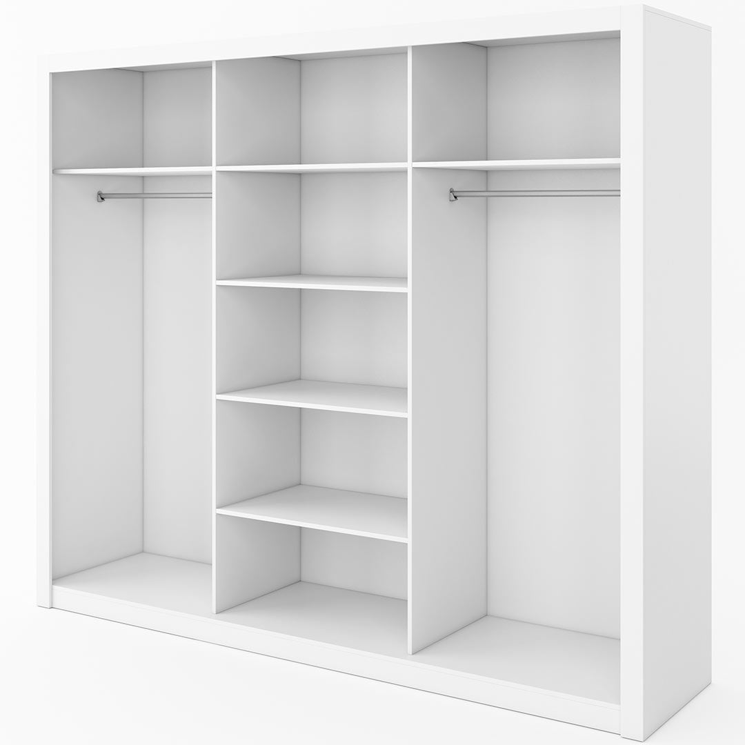 Armoire en bois clair avec 3 portes coulissantes et miroir Idea 01 Triple, Blanc Mat, L250xP60xH215 cm