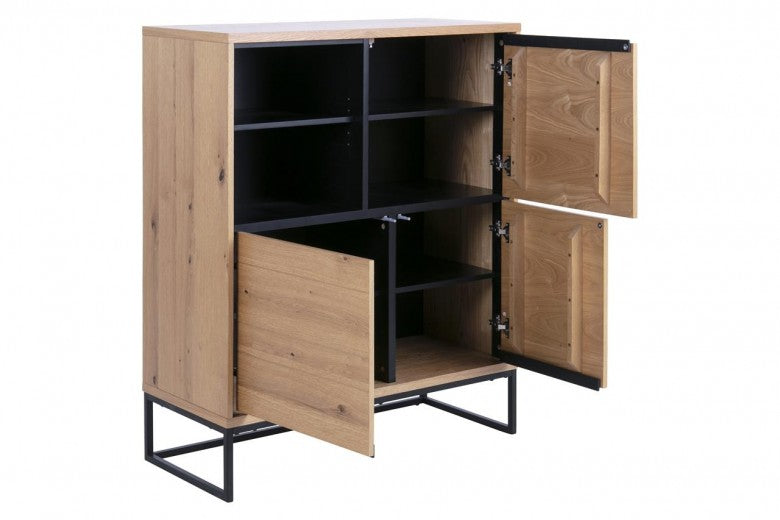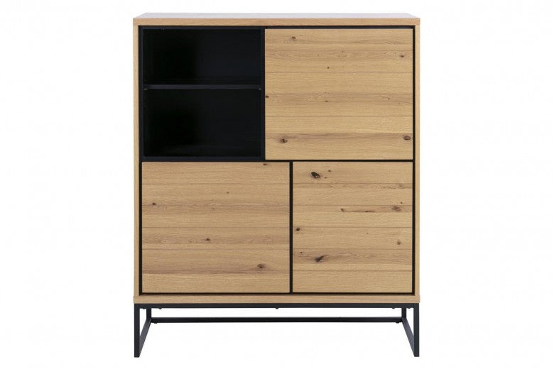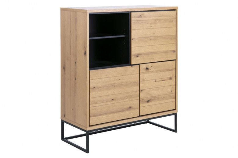 Armoire en placage et métal, avec 3 portes Chêne Dalarna / Noir, l102,2xA45xH124.7 cm