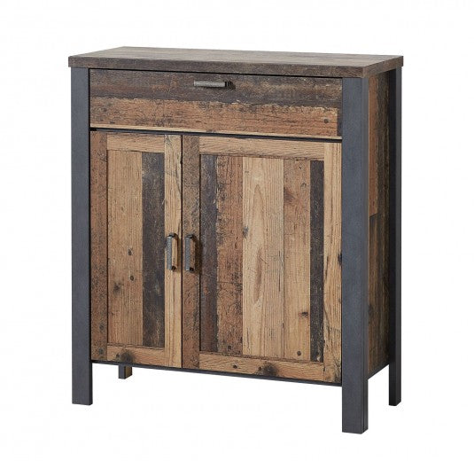 Armoire palette 2 portes et 1 tiroir Chelsea Naturel / Graphite, l94xA40xH105 cm