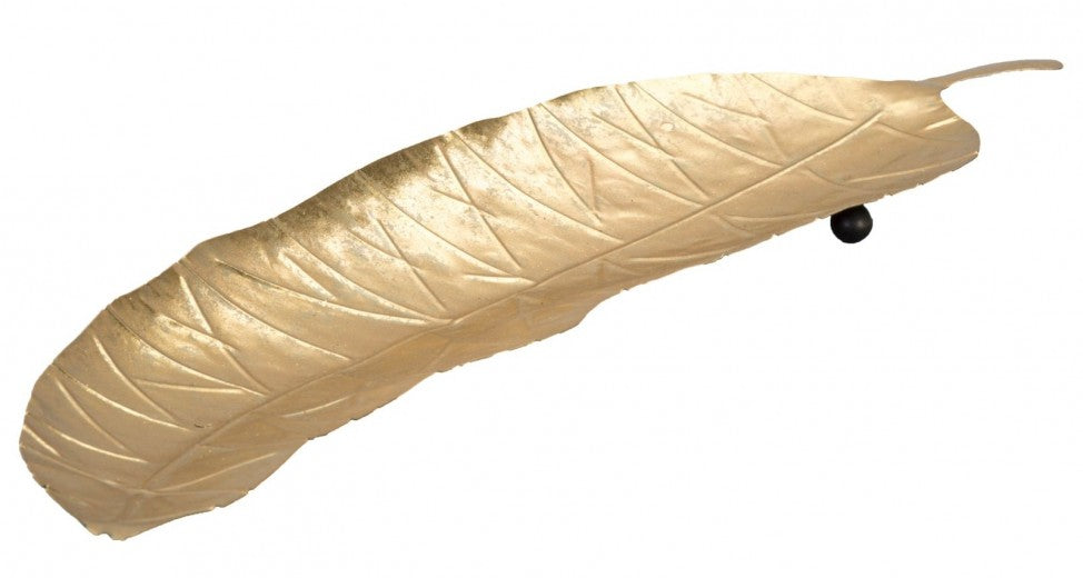 Assiette décorative en métal Long Leaf Doré, L59xl16xH5 cm