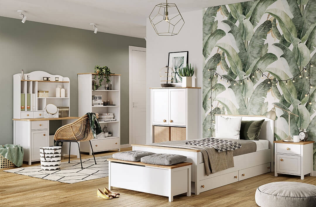 La collection Story comprend des meubles faciles à intégrer, pour enfants et adolescents. Les formes blanches brillantes classiques en combinaison avec le chêne naturel offrent une touche d'authenticité à n'importe quel décor.