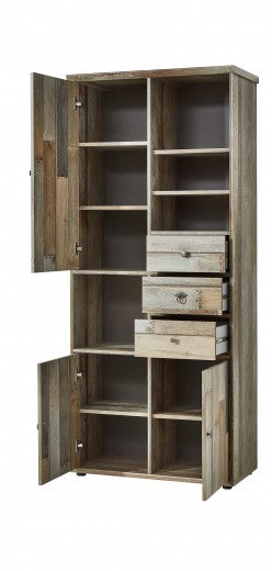 Bibliothèque palette, avec 3 tiroirs et 3 portes Bazna Natur / Gris foncé, l83xA39xH188 cm