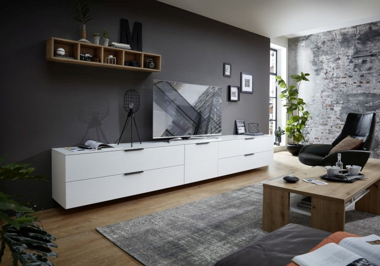 La collection Madeline est spécialement conçue pour aménager un salon ou une salle à manger moderne et élégant, construit avec une attention particulière aux détails. La multitude de détails élégants associés aux tons blanc, chêne et gris foncé souligne le caractère original de cette collection.