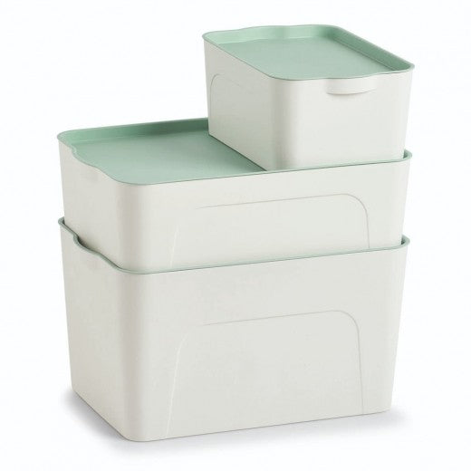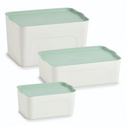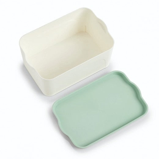 Boîte de rangement en plastique, Couvercle Blanc / Vert Menthe, L32xl20,5xH14 cm