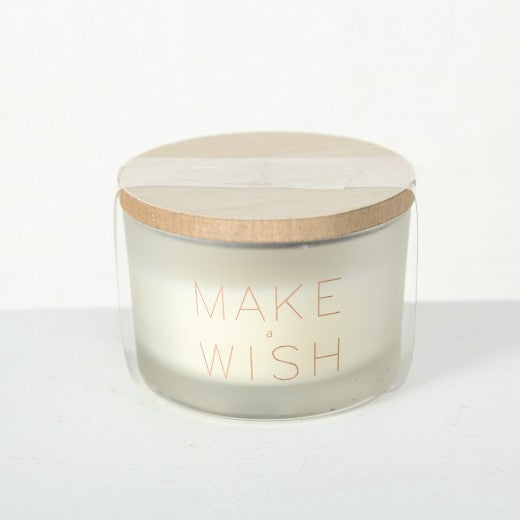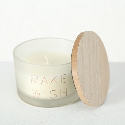 Le produit est fait de cire et a une tasse en verre.