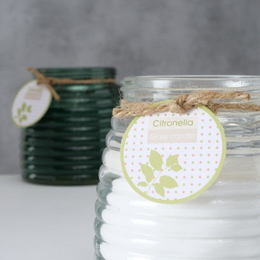 Bougie parfumée en verre Citron Blanc / Vert, Modèles Assortis, Ø12xH13 cm