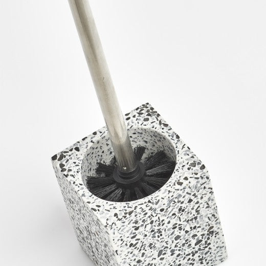 Brosse WC avec support en polyrésine, Terrazzo Blanc / Noir, L10xl10xH38 cm