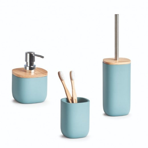 Brosse WC avec support polyrésine, Frêne Bleu Bois, L10xl10xH37,5 cm