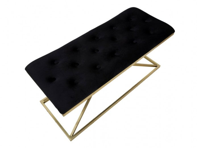 Banquette rembourrée avec pieds en tissu et métal Pyramid Noir / doré, l100xA40xH45 cm