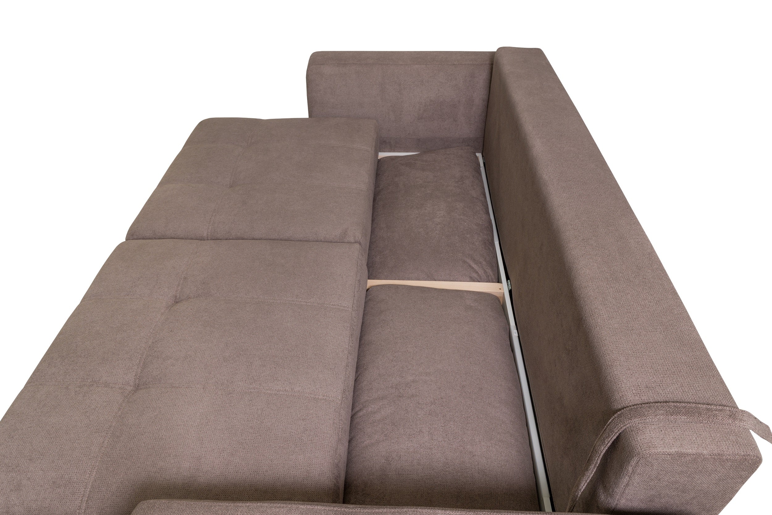 Canapé Extensible, 3 Places, Coffre de Rangement, Rembourré en Tissu, Coussins Inclus, Kary Marron, L246xL111xH93 cm