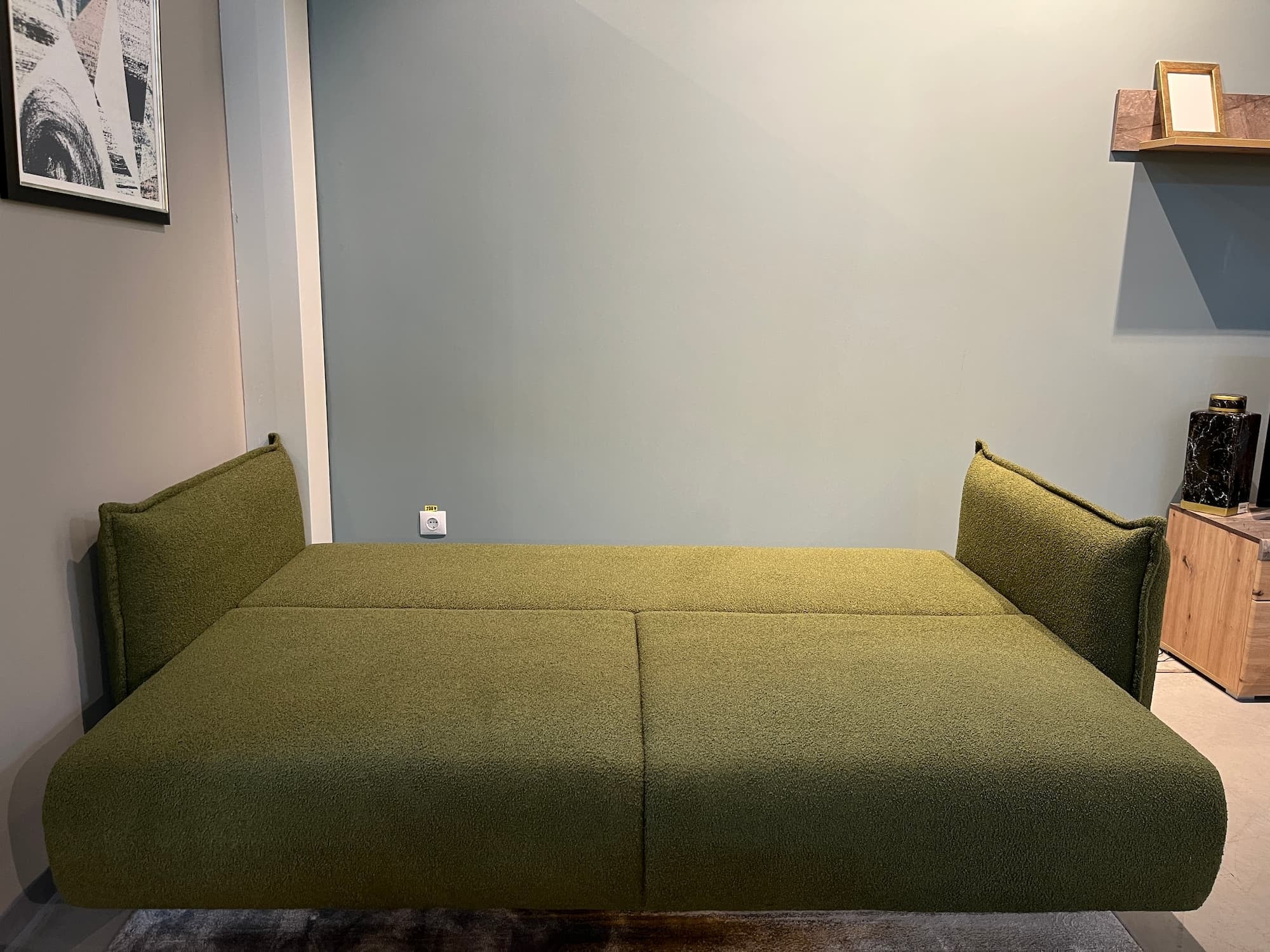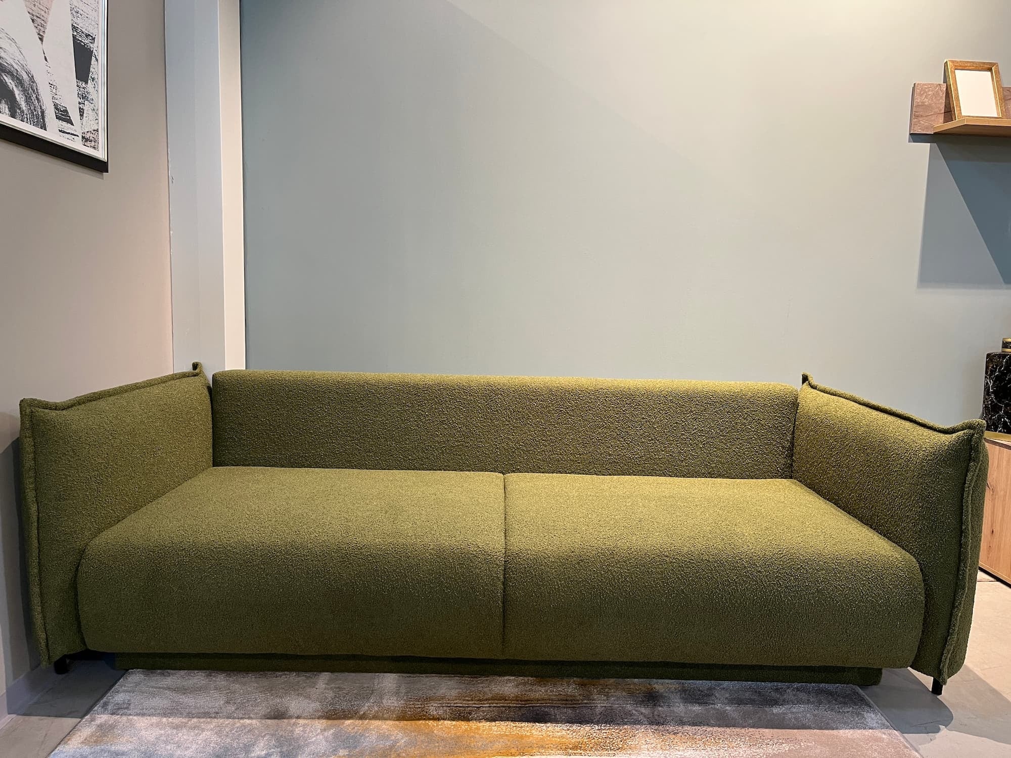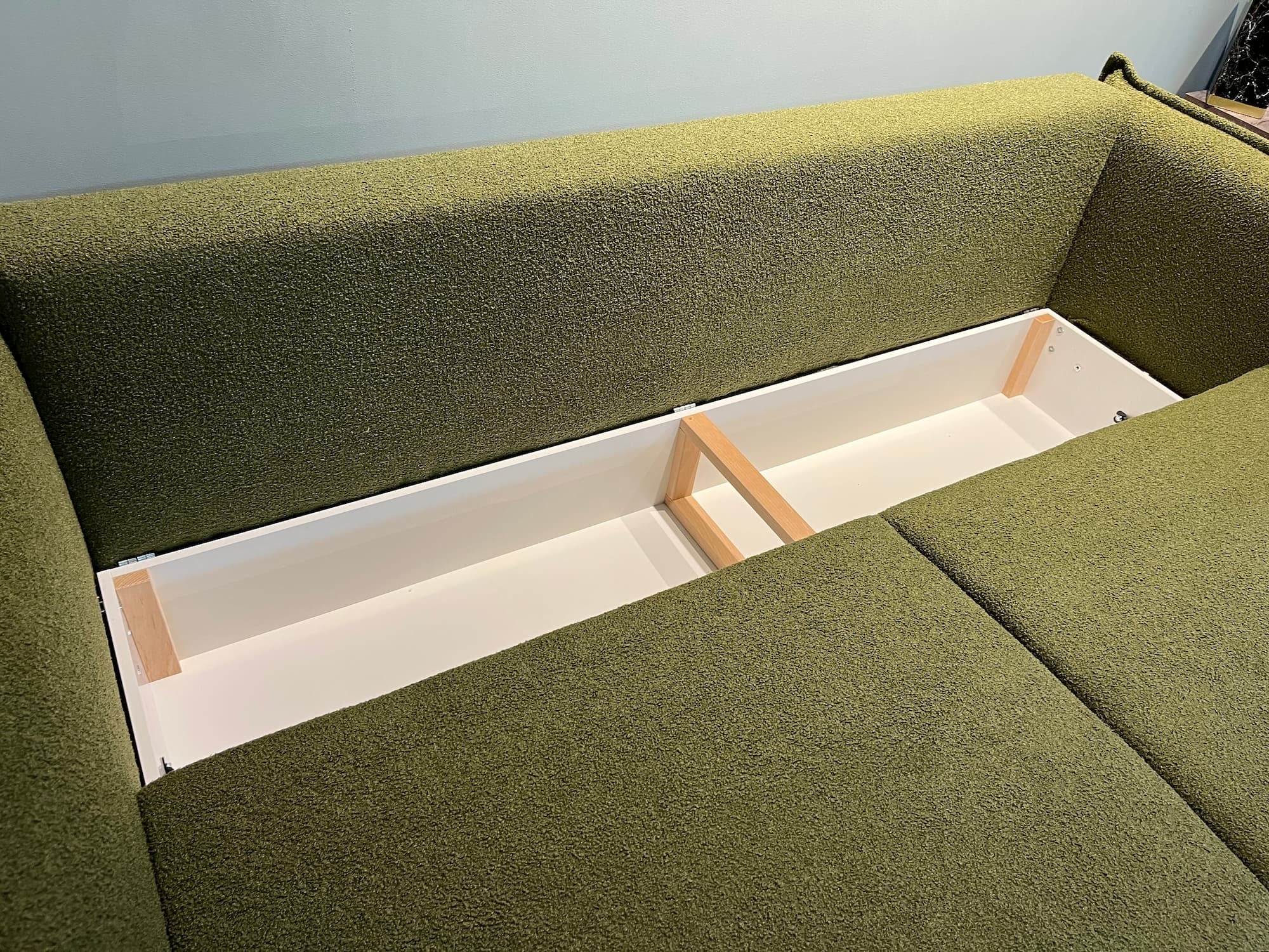 Canapé Extensible, 3 Places, Coffre de Rangement, Rembourré en Tissu, Oreillers Inclus, Amalia Vert Olive, L232xL105xH90 cm