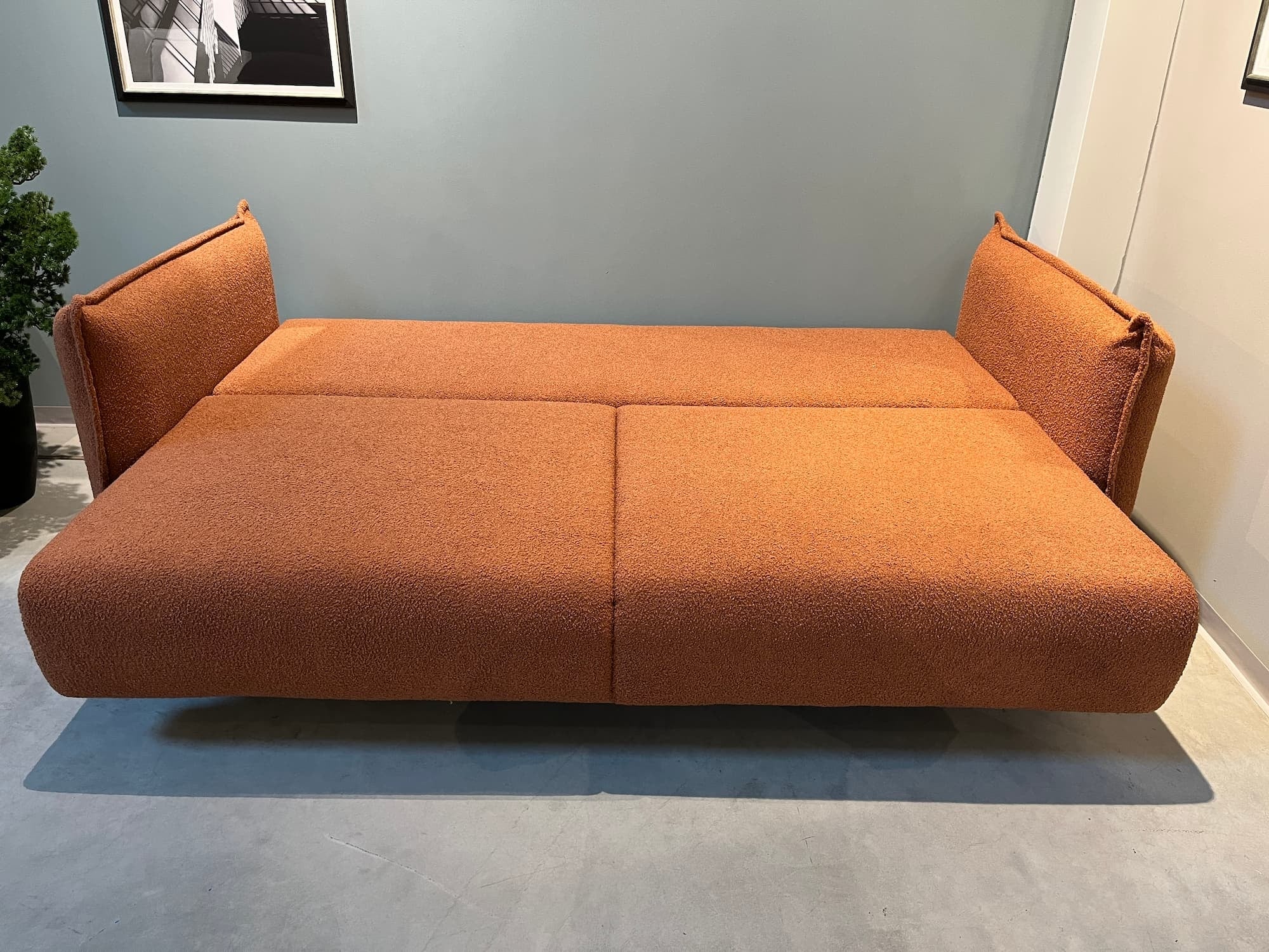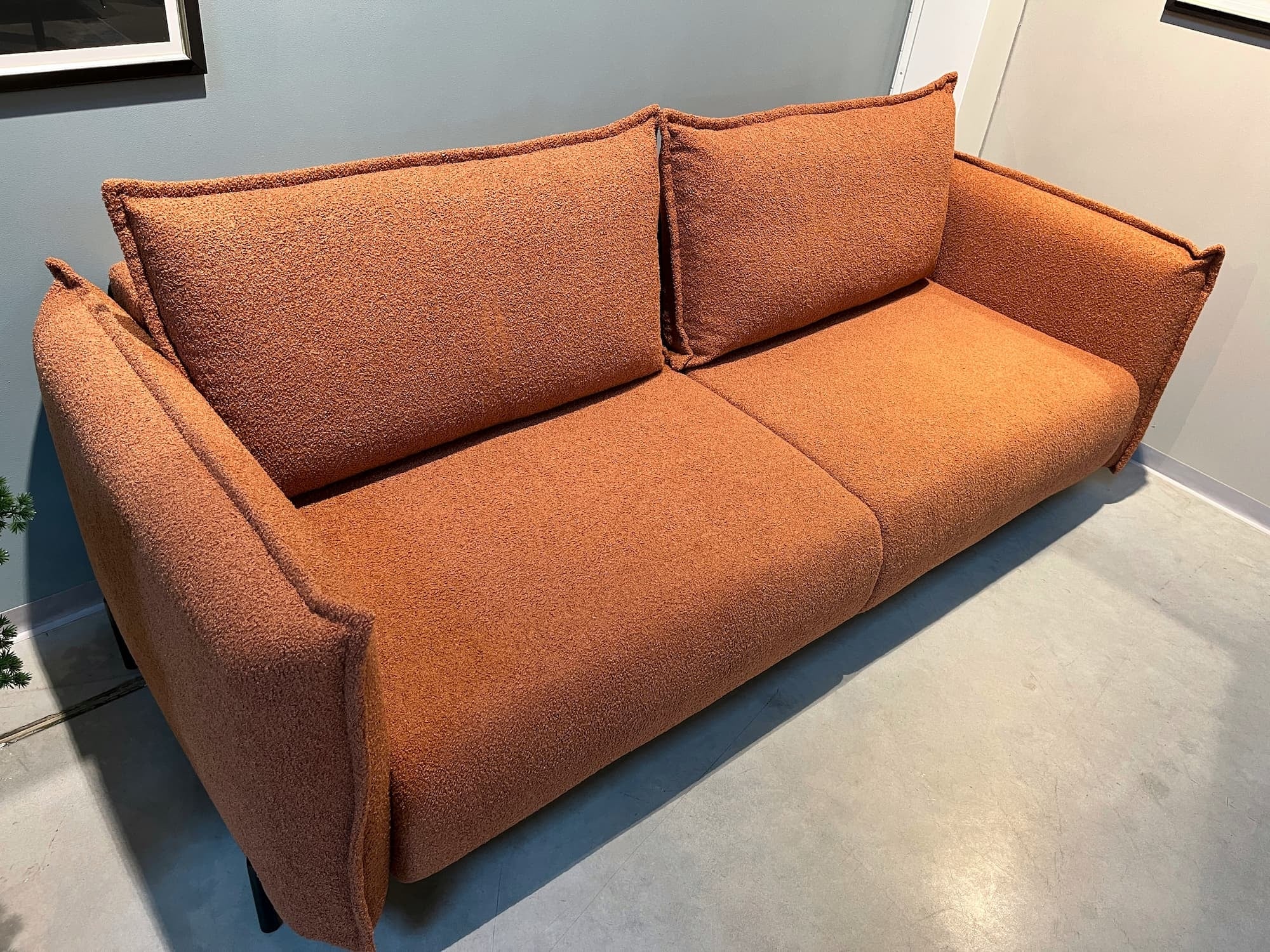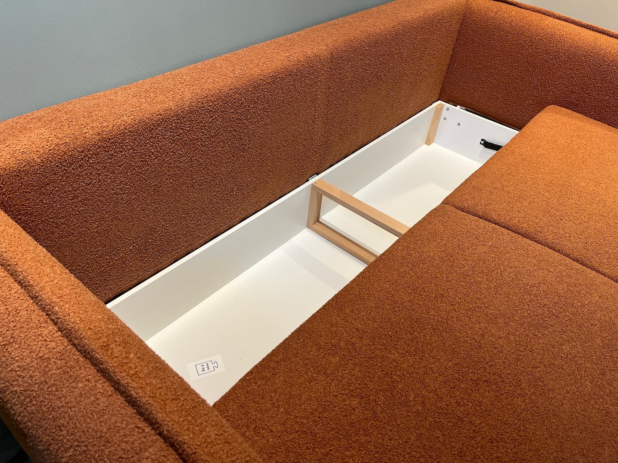 Canapé Extensible, 3 Places, Coffre de Rangement, Tapissé de Tissu, Coussins Inclus, Amalia, Brique, L232xH105xH90 cm