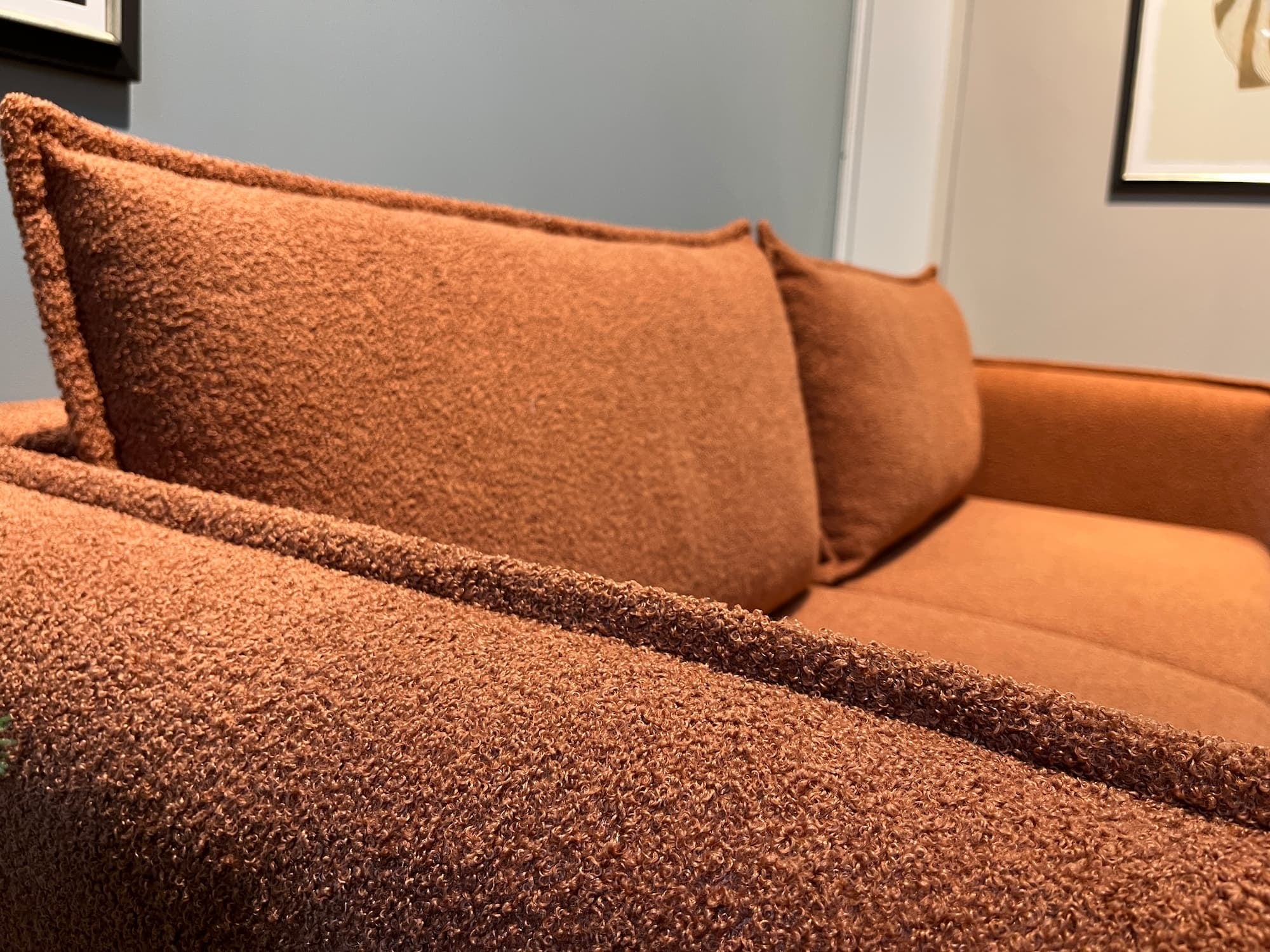 Le canapé est recouvert de tissu. Le revêtement n'est pas déhoussable.