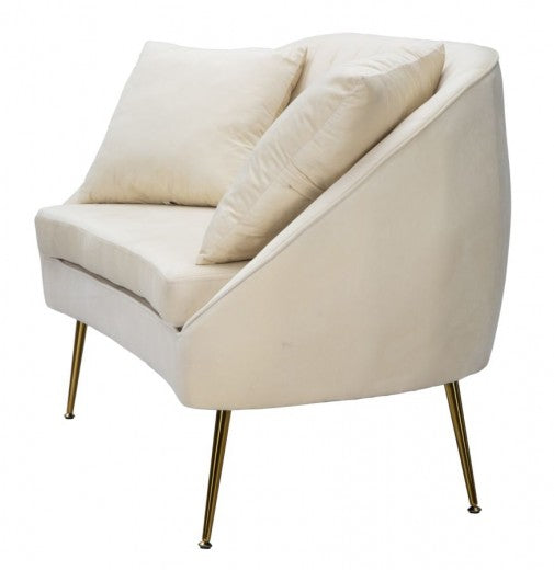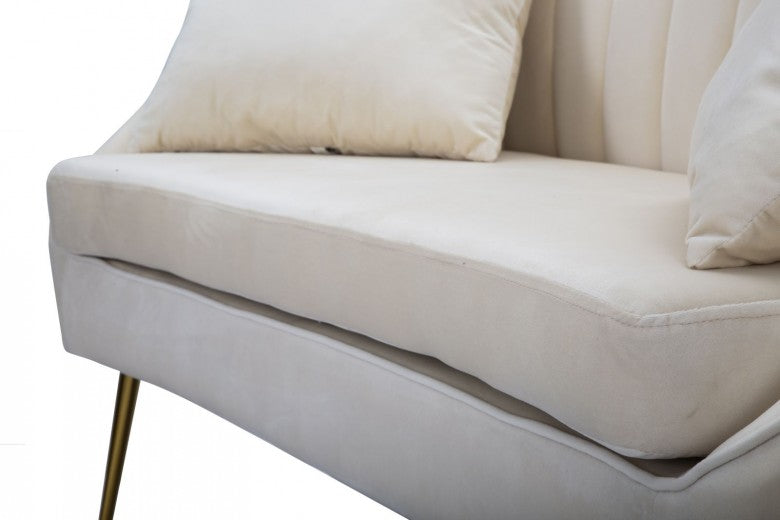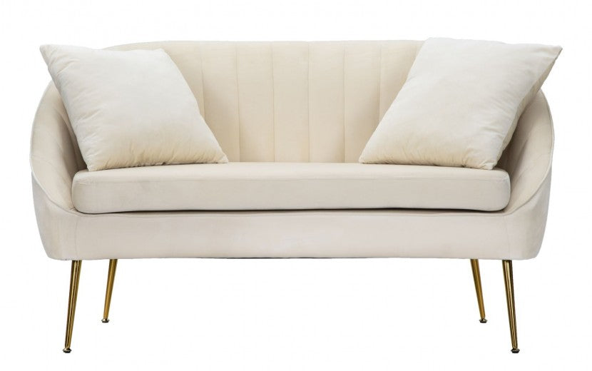 Canapé fixe tapissé de tissu, 2 places Venice Crème / Or, l136xA66xH78 cm