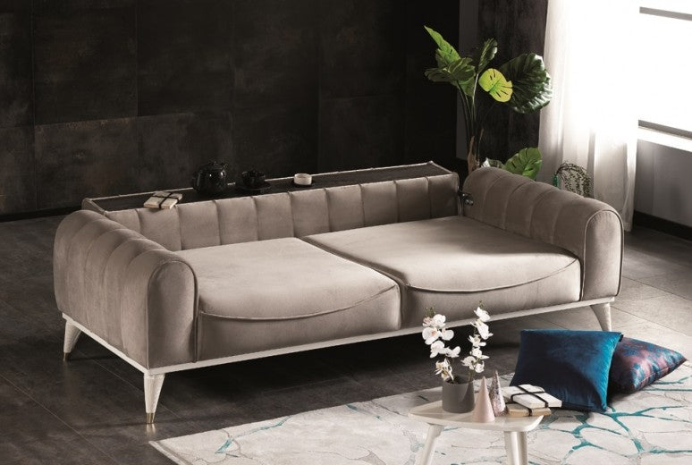 Le dossier du canapé est réversible, offrant ainsi un confort supplémentaire, il peut facilement se substituer à une table basse ou à une étagère, économisant ainsi un espace précieux.