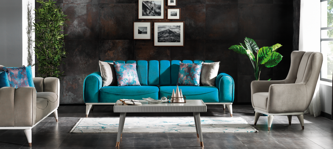 Discrétion, raffinement et beauté sont les éléments qui définissent le canapé Linda Turquoise K1.