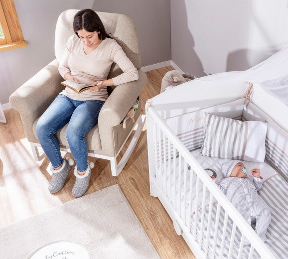 La chaise berçante à bascule a un design classique, est confortable et donnera un air spécial à la chambre de votre enfant.