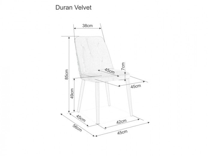 La chaise Duran Velvet se distingue par sa simplicité et son élégance. L'intérieur de votre maison sera admiré par ceux qui aiment les lignes bien définies, la simplicité de leurs formes mais aussi leur fonctionnalité.