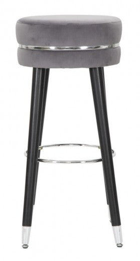 Chaise de bar rembourrée avec tissu et pieds en bois Paris Gris / d'argent, Ø35xH74 cm