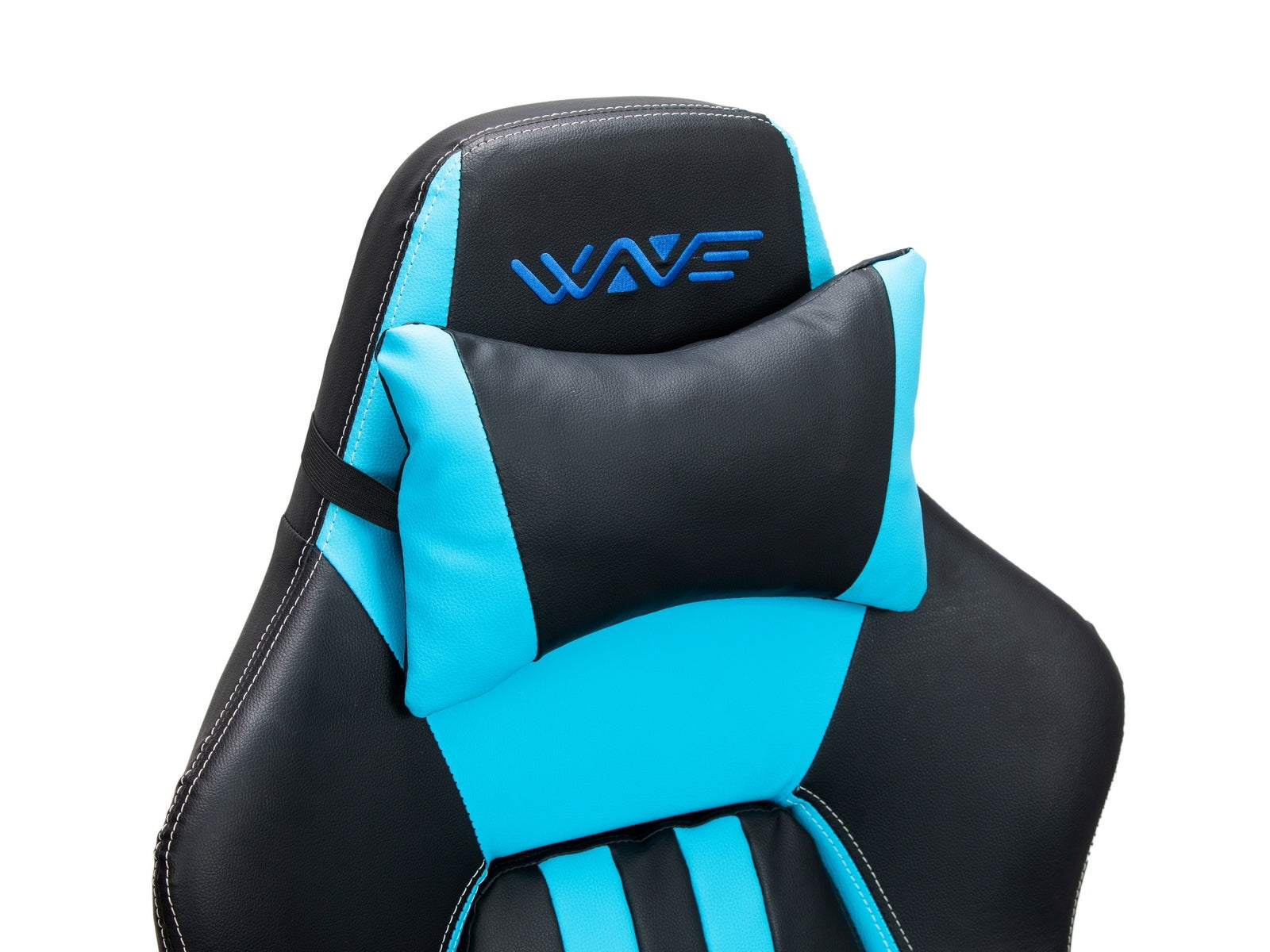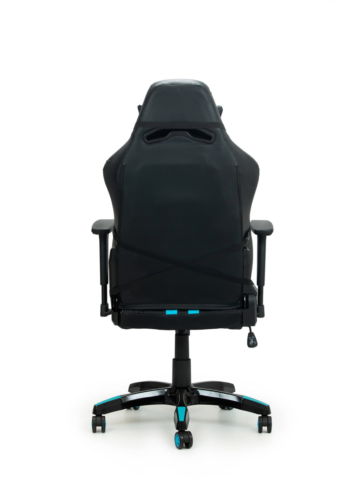 Chaise de jeu rembourrée en cuir écologique Wave Y-2558, Bleu / Noir, L67xW66xH131-141 cm