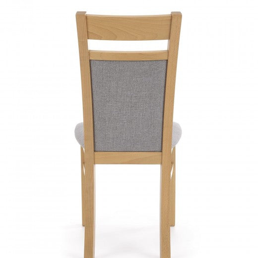 Chaise en bois de hêtre, tapissée de tissu Gerard 2 Gris / Chêne, l46xA55xH97 cm
