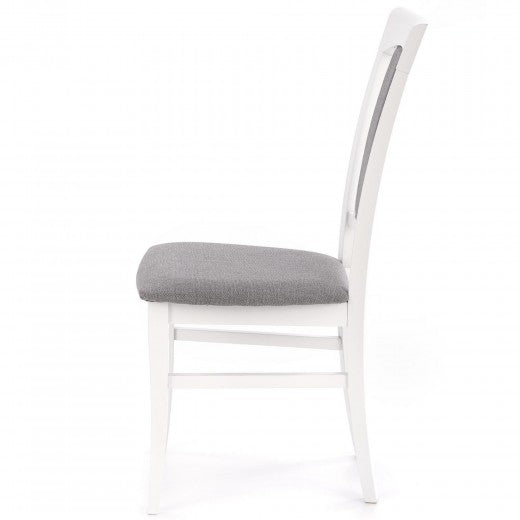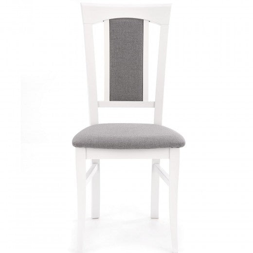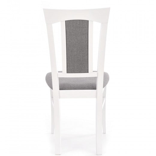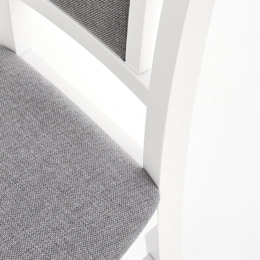 Chaise en bois de hêtre, tapissée de tissu Konrad Gris / Blanc, l46xA57xH96 cm