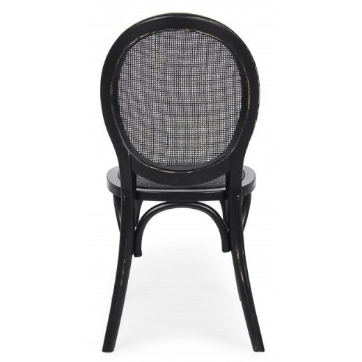 Chaise en bois d'orme, assise en rotin naturel Globo Noir, l45xA53xH93 cm