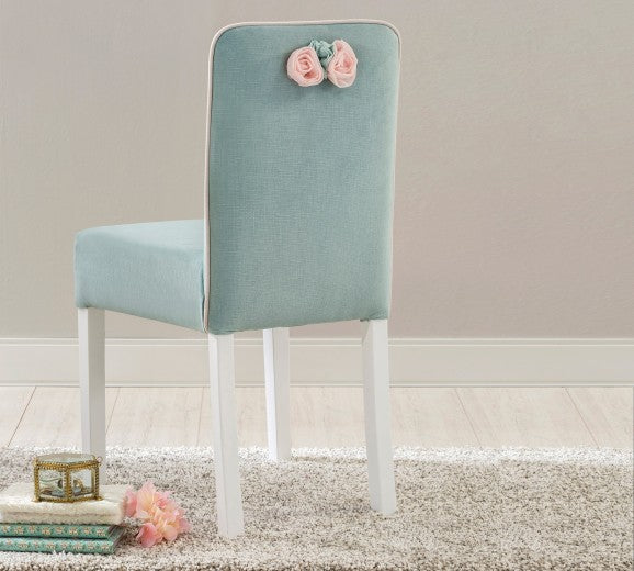 Chaise enfant rembourrée en tissu et pieds en bois Summer Bleu, l44xA49xH87 cm