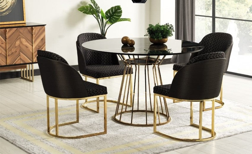 Chaise rembourrée avec pieds en tissu et métal Monaco Noir / Or, l46xA48xH87 cm