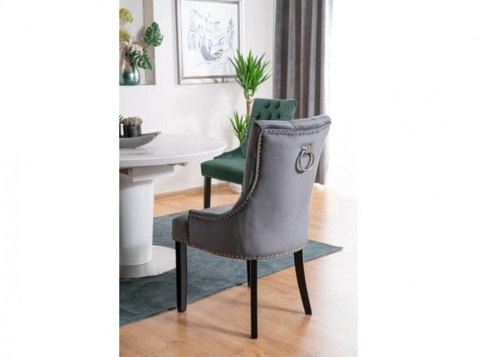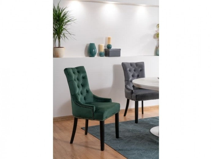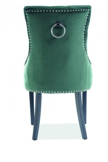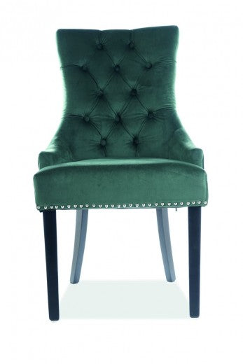 Chaise rembourrée avec tissu et pieds en bois, Edward Velvet Dark Vert / Noir, l56xA63xH98 cm