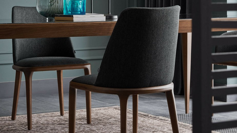 Chaise rembourrée avec tissu et pieds en bois Logan Anthracite / Noyer, l47xA47xH85 cm