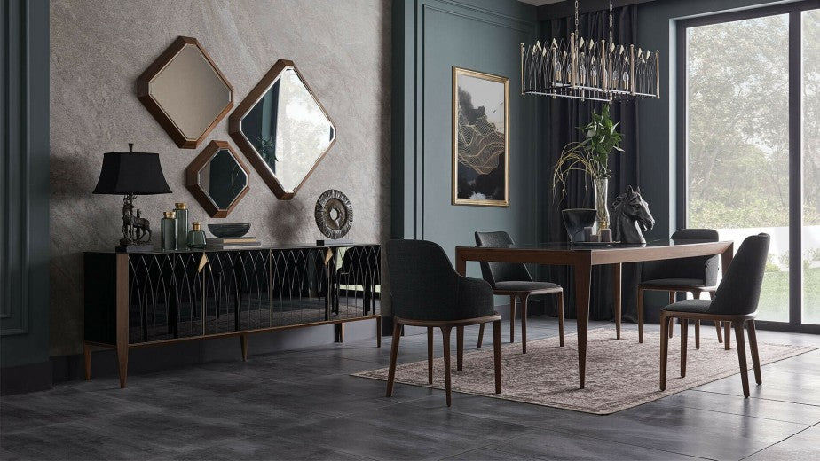 Le charme intemporel des meubles glam en combinaison avec les dernières tendances du design définissent la collection Logan. Leur caractère exceptionnel est mis en valeur par l'élégance et le raffinement, permettant l'agencement d'un intérieur dans lequel le temps passé sera inoubliable.