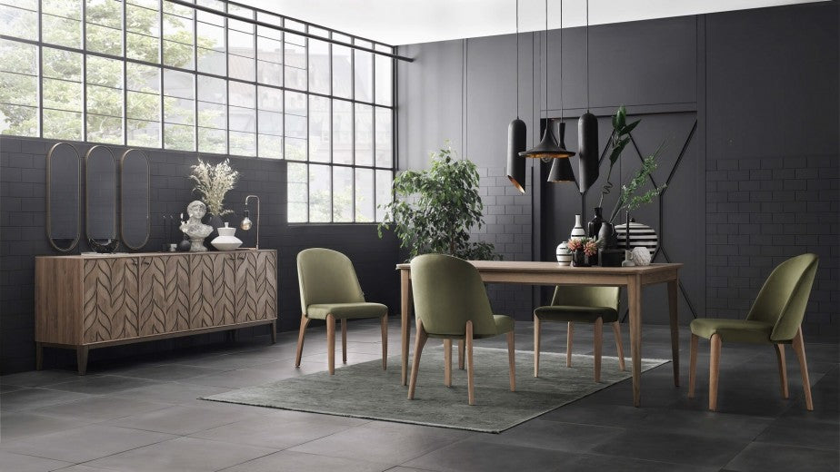 Chaise rembourrée avec tissu et pieds en bois Noble Velvet Vert / Walnut, l48xA51xH82 cm
