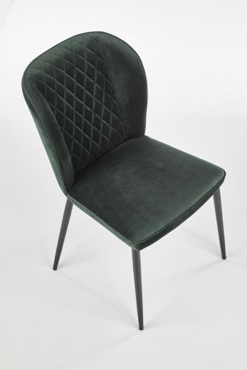 Chaise rembourrée avec tissu et pieds en métal K399 Velours Vert foncé / Noir, l50xA60xH84 cm