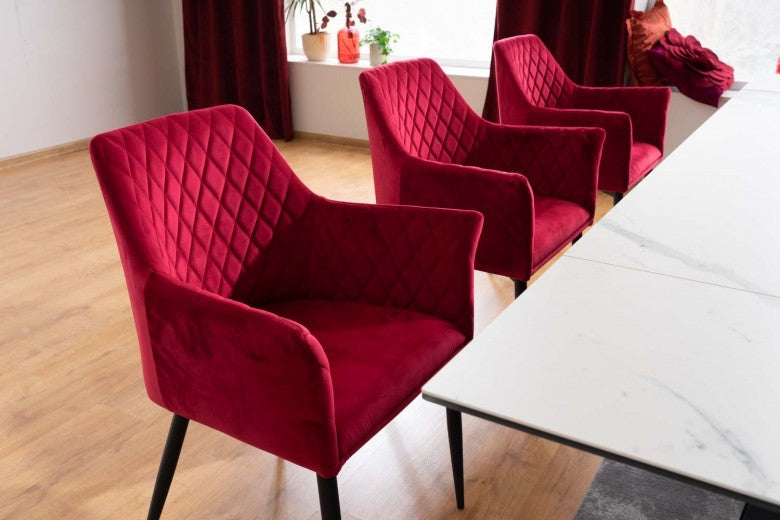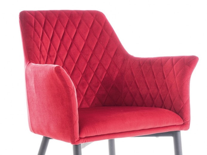 Chaise rembourrée avec tissu et pieds en métal Sergio Velours Bordeaux / Noir, l45xA45xH86 cm