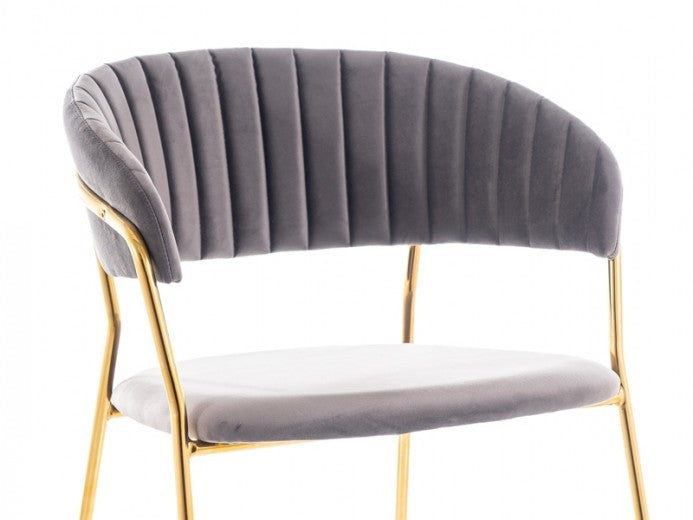 Chaise rembourrée avec tissu et pieds en métal Velours Lira Gris / Or, l56xA50xH78 cm