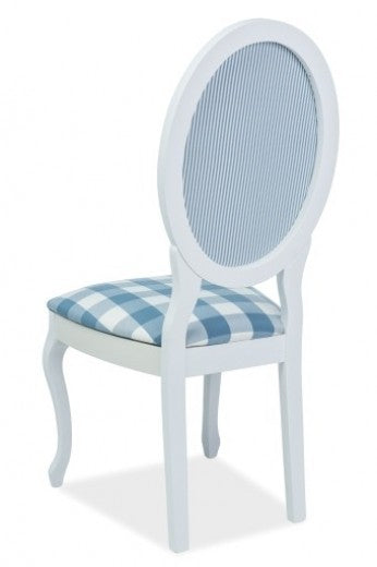 Chaise rembourrée en bois et tissu LV-SC Blanc / Bleu, l48xA43xH104 cm