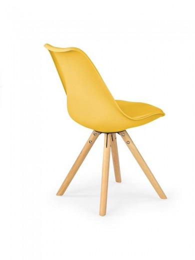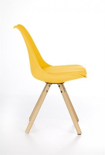 Chaise rembourrée en cuir écologique, avec pieds en bois K201 Jaune, l48xA57xH81 cm