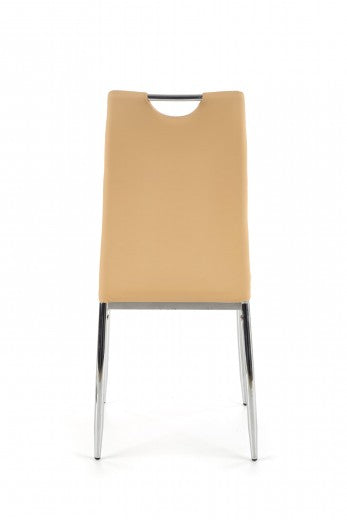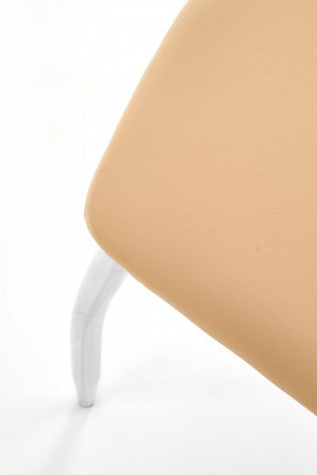 Chaise rembourrée en cuir écologique, avec pieds en métal K187 Beige / Chrome, l46xA56xH97 cm