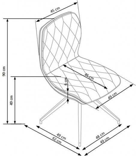 Chaise rembourrée en cuir écologique, avec pieds en métal K237 Marron, l49xA62xH90 cm