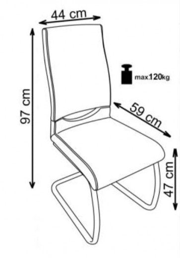 Chaise rembourrée en éco-cuir, avec pieds en métal K259 Gris / Blanc, l44xA59xH97 cm