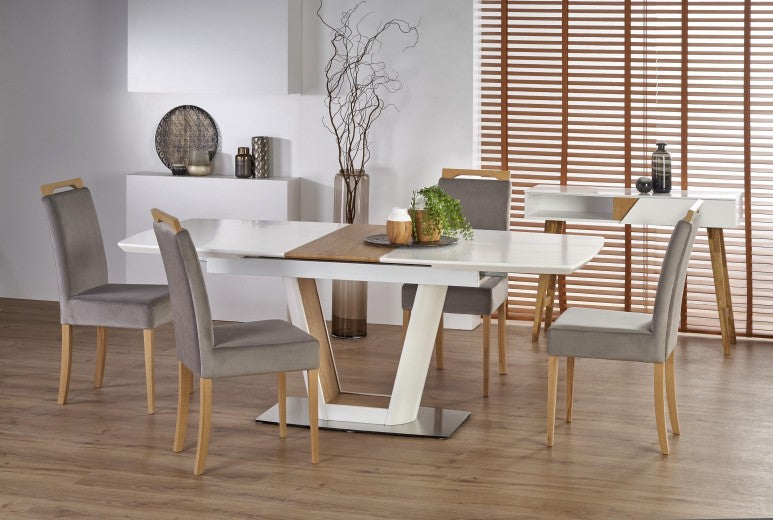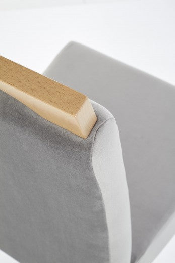 Chaise rembourrée en tissu, avec pieds en bois Clarion Gris / Chêne, l42xA58xH97 cm