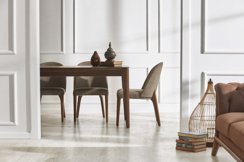 Chaise rembourrée en tissu, avec pieds en bois Noble Velvet Gris / Walnut, l48xA51xH82 cm