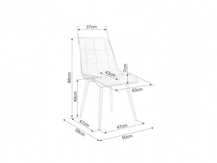 Chaise rembourrée en tissu avec pieds en métal Chic Velours Mat Gris / Noir, l50xA58xH88 cm